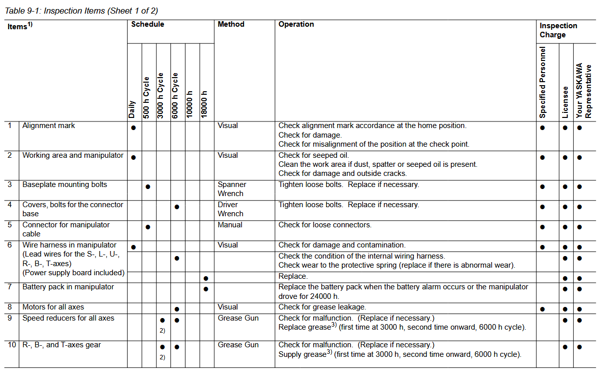 Maintenance Inspection Schedule YRC1000 PH200R / YR-1-06VRY200-X10 Manipulator December 19, 2025 16:51 Updated Battery-Replacement-PH200R-YR-1-06VRY200-10-ManipulatorGrease-Procedure-PM-PH200R-YR-1-06VRY200-X10-Manipulator Comments 0 comments Please sign in to leave a comment.