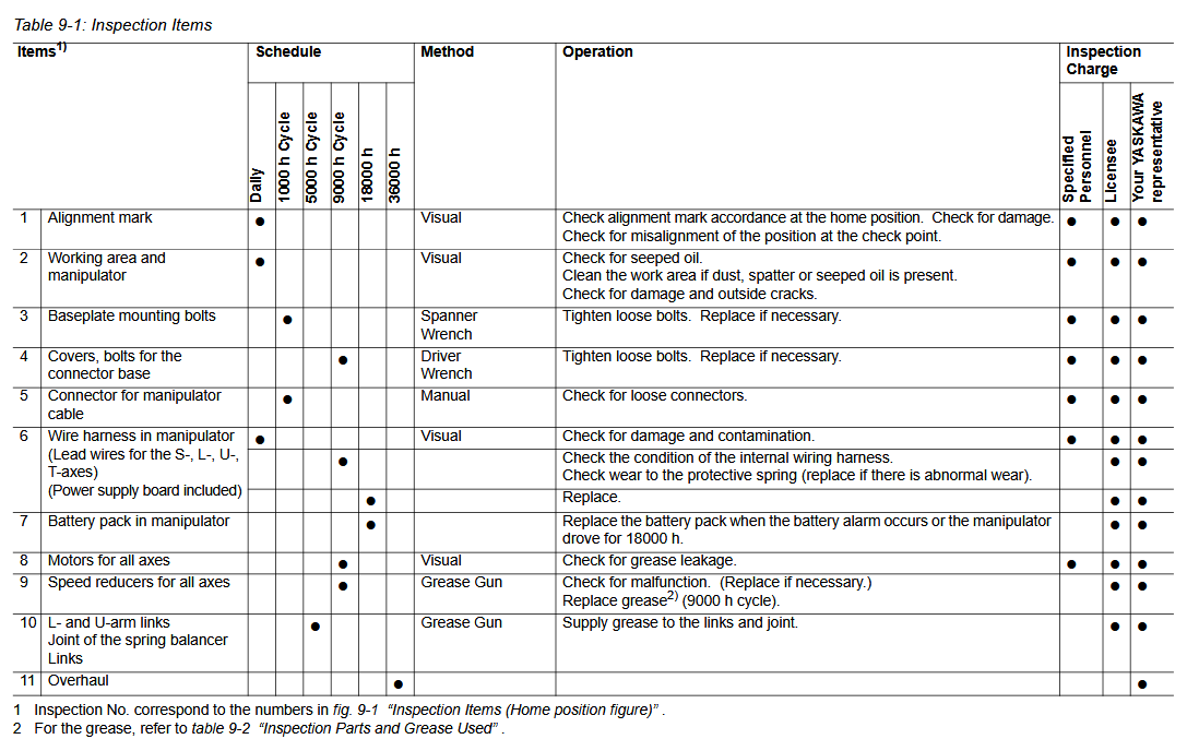 Maintenance Inspection Schedule YRC1000 PL800 / YR-1-04LXH800-A00 Manipulator December 22, 2025 16:21 Updated Battery-Replacement-YRC1000-PL800-YR-1-04LXH800-A00-ManipulatorGrease-Procedure-PM-PL800-YR-1-04LXH800-A00-Manipulator Related articles Parts YRC1000 PL800 / YR-1-04LXH800-A00 Manipulator Grease Procedure (PM) PL800 / YR-1-04LXH800-A00 Manipulator Comments 0 comments Please sign in to leave a comment.