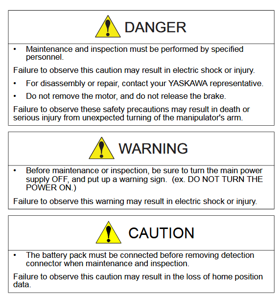 Maintenance Inspection Schedule DX200 MH5LS II / YR-MH005LS-J01 Manipulator December 22, 2025 19:32 Updated Battery-Replacement-MH5LS-II-YR-MH005LS-J01-ManipulatorGrease-Procedure-PM-MH5LS-II-YR-MH005LS-J01-Manipulator Related articles YRC1000 Alarm 0300 Clarification Comments 0 comments Please sign in to leave a comment.