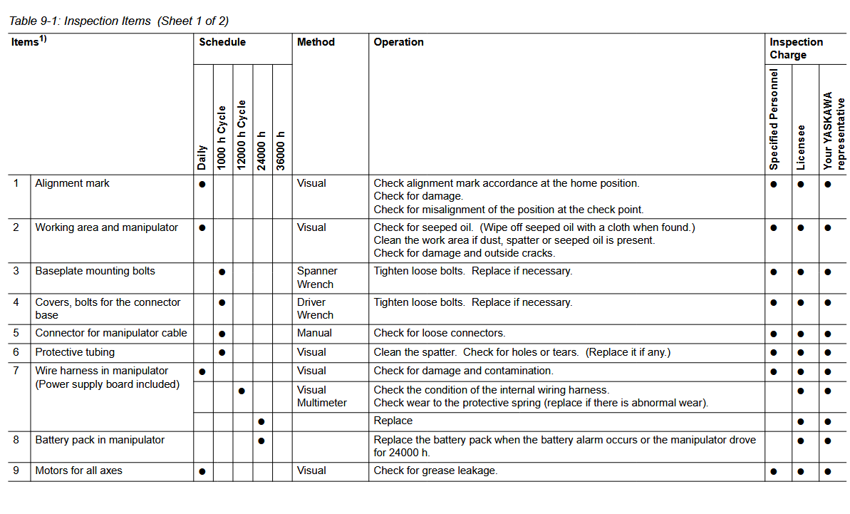 Maintenance Inspection Schedule YRC1000 SP80 / YR-1-06VX88-A00 Manipulator December 22, 2025 20:28 Updated Battery-Replacement-SP80-YR-1-06VX88-A00-ManipulatorGrease-Procedure-PM-SP80-YR-1-06VX88-A00-Manipulator Comments 0 comments Please sign in to leave a comment.