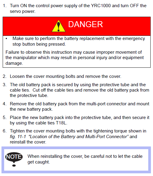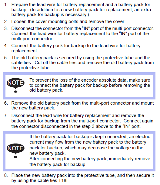 If Batteries have to be changed with power off then a backup lead is needed. HW1471281-A, 179529-1
