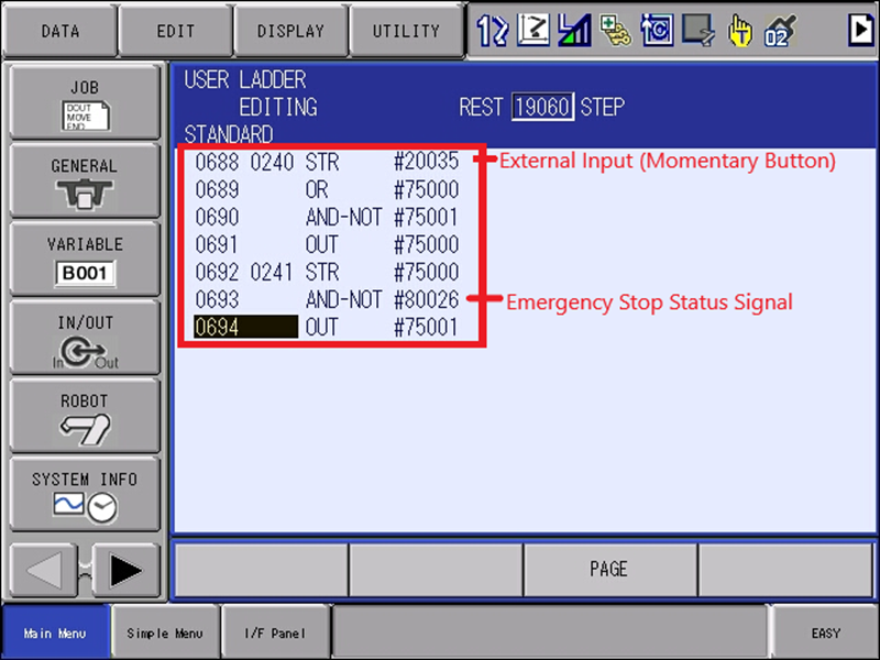 This is the process to latch the LED on a momentary push button to function like a toggle switch through the Concurrent I/O. Modifying the Concurrent I/O can also be done using the Ladder Editor. Prior to wiring any external devices, reference YRC1000 or YRC1000micro manuals to wire correctly. Not doing some may damage the output or input signal of the YRC1000 or YRC1000micro. Depending on the user’s system, it being a YRC1000 or YRC1000micro controller, an NPN or PNP General Purpose I/O (GPIO) board, available I/O, and/or available memory in the Concurrent I/O, the configuration may differ from the example shown in this article. However, the underlying logic and approach remains the same.