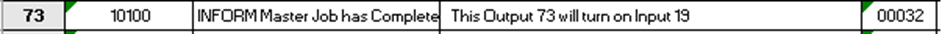 Note that Output 73 will turn on Input 19. The MLX300 controls the first 64 outputs. Since the robot pendant or INFORM job is unable to turn on these outputs, a higher number Output 73 was used.