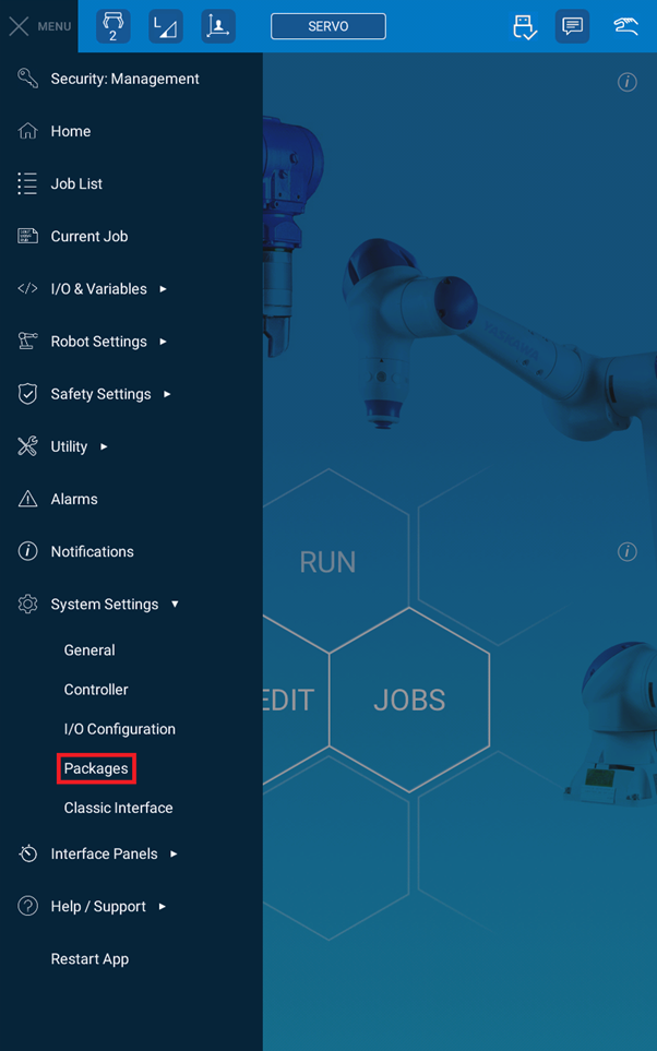 - The Smart Pendant needs to be in MANAGEMENT security level.