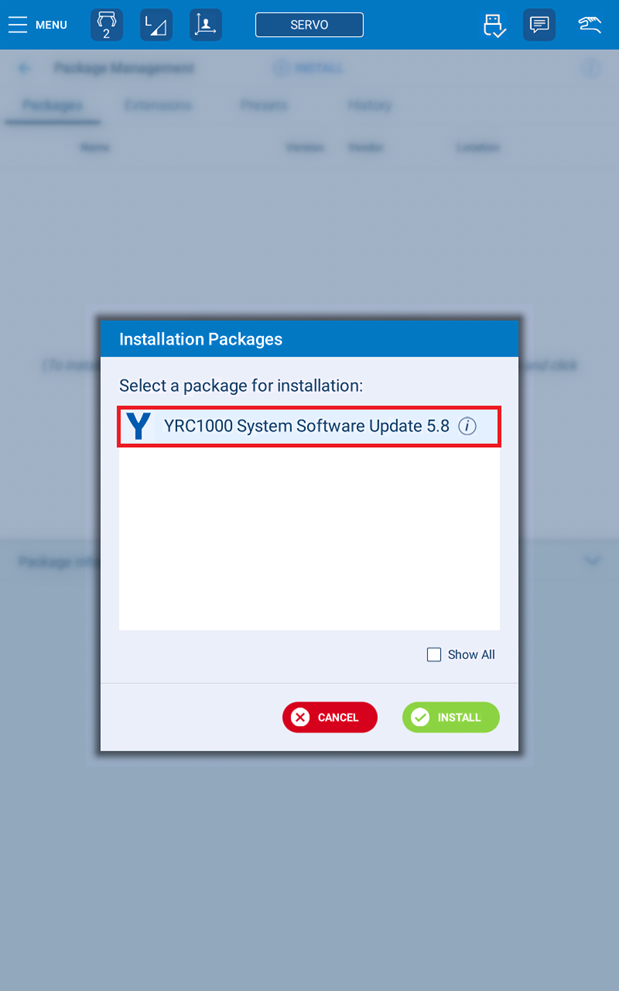 - Once the installation is complete the controller may automatically re-boot into standard operation mode or prompt you to manually cycle power to do so depending on controller and robot model type.
