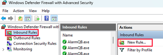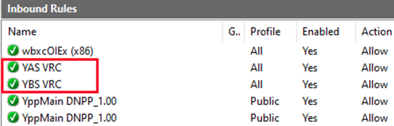 6. In the Inbound Rules column you can observe the new rules created for both the YRC1000 and the YRC1000micro.