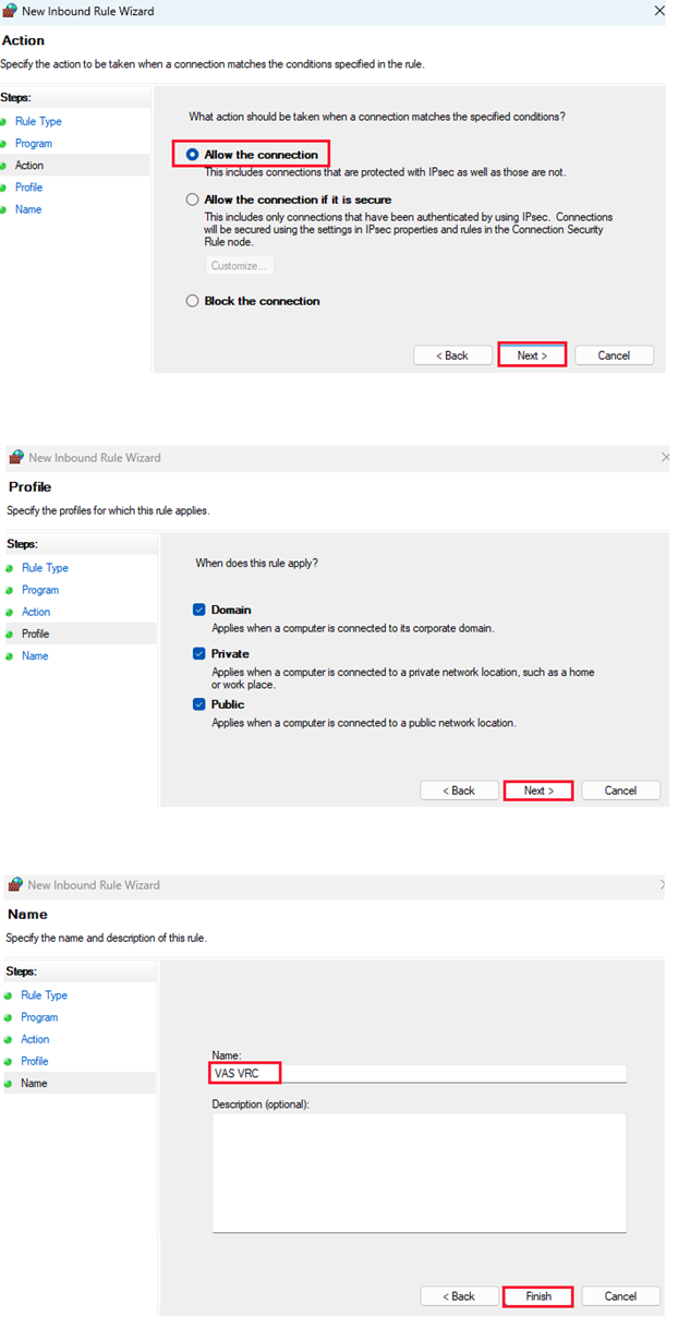 5. Continue by setting the Action, Profile and give the rule a name as shown below. The example shows the name for the YRC1000 file.