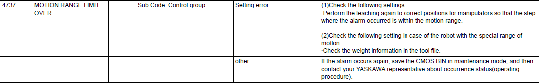 DX200 ALARM CODE 4737 MOTION RANGE LIMIT OVER February 02, 2026 21:13 Updated Comments 0 comments Please sign in to leave a comment.