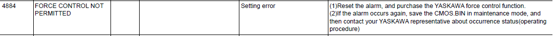 DX200 ALARM CODE 4884 FORCE CONTROL NOT PERMITTED February 03, 2026 13:24 Updated Comments 0 comments Please sign in to leave a comment.