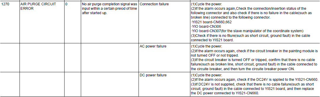 DX200 ALARM CODE 1270 AIR PURGE CIRCUIT ERROR February 03, 2026 15:03 Updated Related articles DX200 ALARM CODE 1685 INSTANT POWER FAILURE (TIME)(SV) Comments 0 comments Please sign in to leave a comment.