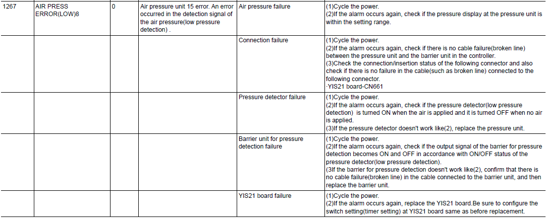 DX200 ALARM CODE 1267 AIR PRESS ERROR (LOW) 8 February 03, 2026 15:32 Updated Comments 0 comments Please sign in to leave a comment.