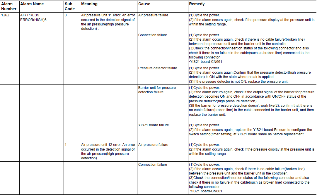 DX200 ALARM CODE 1262 AIR PRESS ERROR (HIGH) 6 February 03, 2026 16:26 Updated Comments 0 comments Please sign in to leave a comment.