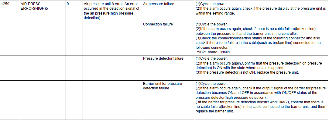 DX200 ALARM CODE 1259 AIR PRESS ERROR (HIGH) 5 February 03, 2026 16:48 Updated Comments 0 comments Please sign in to leave a comment.