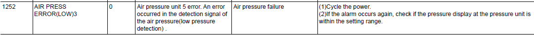 DX200 ALARM CODE 1252 AIR PRESS ERROR (LOW) 3 February 03, 2026 18:27 Updated Comments 0 comments Please sign in to leave a comment.