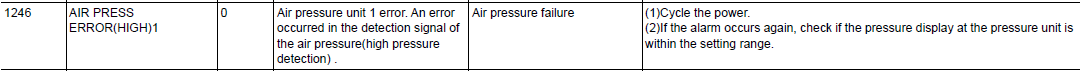 DX200 ALARM CODE 1246 AIR PRESS ERROR (HIGH) 1 February 03, 2026 18:45 Updated Comments 0 comments Please sign in to leave a comment.
