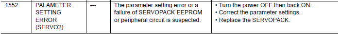 NX100 ALARM CODE 1552 PARAMETER SETTING ERROR (SERVO 2) February 05, 2026 16:14 Updated Comments 0 comments Please sign in to leave a comment.