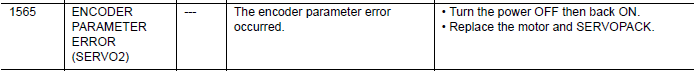 NX100 ALARM CODE 1565 ENCODER PARAMETER ERROR (SERVO 2) February 05, 2026 16:55 Updated Comments 0 comments Please sign in to leave a comment.