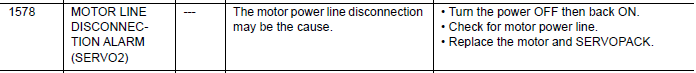 NX100 ALARM CODE 1578 MOTOR LINE DISCONNECTION ALARM (SERVO 2) February 05, 2026 18:15 Updated Comments 0 comments Please sign in to leave a comment.