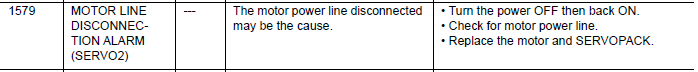 NX100 ALARM CODE 1579 MOTOR LINE DISCONNECTION ALARM (SERVO 2) February 05, 2026 18:18 Updated Comments 0 comments Please sign in to leave a comment.