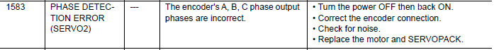 NX100 ALARM CODE 1583 PHASE DETECTION ERROR (SERVO 2) February 05, 2026 18:24 Updated Comments 0 comments Please sign in to leave a comment.