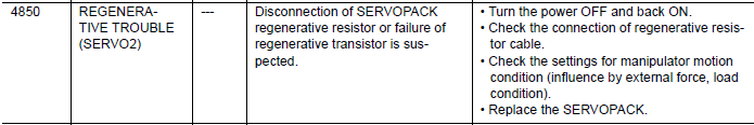 NX100 ALARM CODE 4850 REGENERATIVE TROUBLE (SERVO 2) February 05, 2026 19:56 Updated Comments 0 comments Please sign in to leave a comment.