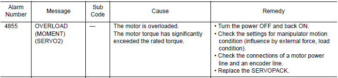 NX100 ALARM CODE 4855 OVERLOAD (MOMENT) (SERVO 2) February 05, 2026 20:13 Updated Comments 0 comments Please sign in to leave a comment.