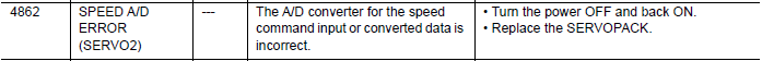 NX100 ALARM CODE 4862 SPEED A/D ERROR (SERVO 2) February 05, 2026 20:31 Updated Comments 0 comments Please sign in to leave a comment.