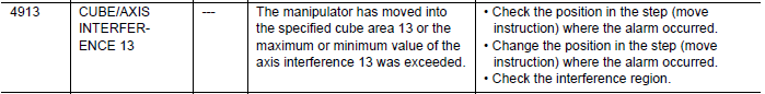 NX100 ALARM CODE 4913 CUBE/AXIS INTERFERENCE 13 February 06, 2026 12:58 Updated Comments 0 comments Please sign in to leave a comment.