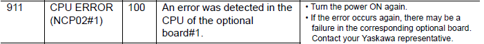 NXC100 ALARM CODE 0911 CPU ERROR (NCP02#1) February 10, 2026 15:06 Updated Comments 0 comments Please sign in to leave a comment.