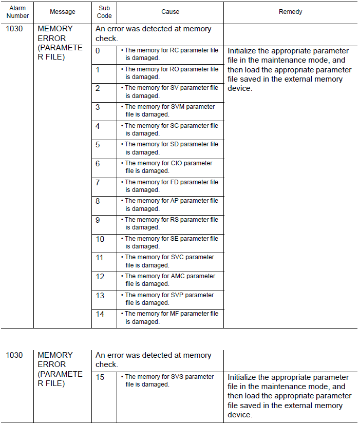 NXC100 ALARM CODE 1030 MEMORY ERROR (PARAMETER FILE) February 10, 2026 18:09 Updated Comments 0 comments Please sign in to leave a comment.
