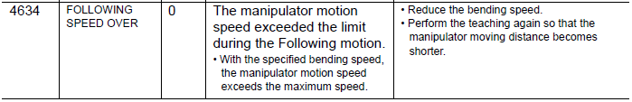 NXC100 ALARM CODE 4634 FOLLOWING SPEED OVER February 11, 2026 13:51 Updated Related articles NXC100 ALARM CODE 0060 COMMUNICATION ERROR (I/O MODULE) Comments 0 comments Please sign in to leave a comment.