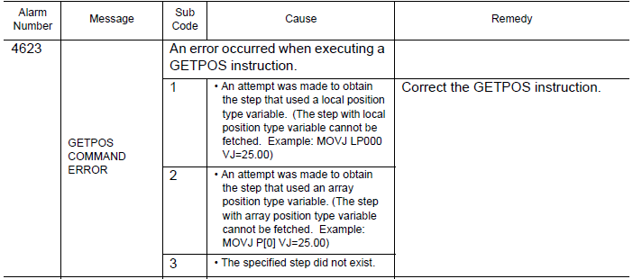 NXC100 ALARM CODE 4623 GETPOS COMMAND ERROR February 11, 2026 13:54 Updated Comments 0 comments Please sign in to leave a comment.