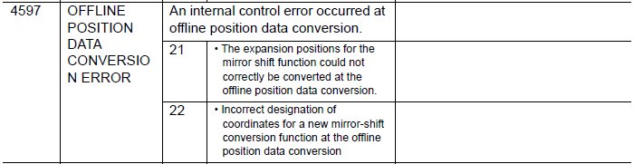 NXC100 ALARM CODE 4597 OFFLINE POSITION DATA CONVERSION ERROR February 12, 2026 13:57 Updated Comments 0 comments Please sign in to leave a comment.