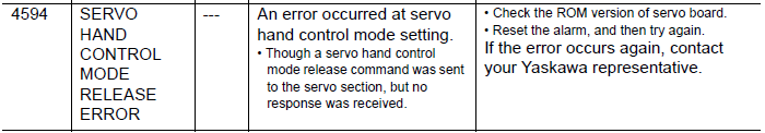 NXC100 ALARM CODE 4594 SERVO HAND CONTROL MODE RELEASE ERROR February 12, 2026 14:27 Updated Comments 0 comments Please sign in to leave a comment.