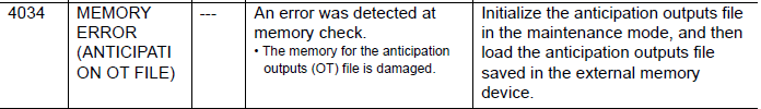 NXC100 ALARM CODE 4034 MEMORY ERROR (ANTICIPATION OT FILE) February 17, 2026 15:40 Updated Comments 0 comments Please sign in to leave a comment.