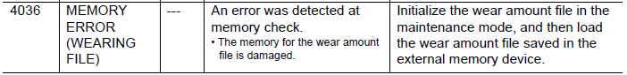 NXC100 ALARM CODE 4036 MEMORY ERROR (WEARING FILE) February 17, 2026 15:53 Updated Comments 0 comments Please sign in to leave a comment.