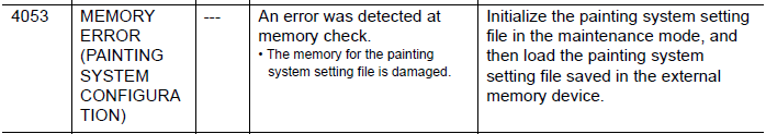NXC100 ALARM CODE 4053 MEMORY ERROR (PAINTING SYSTEM CONFIGURATION) February 17, 2026 19:30 Updated Comments 0 comments Please sign in to leave a comment.