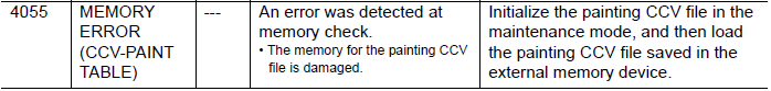 NXC100 ALARM CODE 4055 MEMORY ERROR (CCV-PAINT TABLE) February 17, 2026 19:36 Updated Comments 0 comments Please sign in to leave a comment.