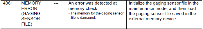 NXC100 ALARM CODE 4061 MEMORY ERROR (GAGING SENSOR FILE) February 17, 2026 21:07 Updated Comments 0 comments Please sign in to leave a comment.