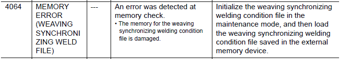 NXC100 ALARM CODE 4064 MEMORY ERROR (WEAVING SYNCHRONIZING WELD FILE) February 17, 2026 21:14 Updated Comments 0 comments Please sign in to leave a comment.