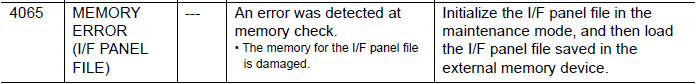 NXC100 ALARM CODE 4065 MEMORY ERROR (I/F PANEL FILE) February 17, 2026 21:16 Updated Comments 0 comments Please sign in to leave a comment.