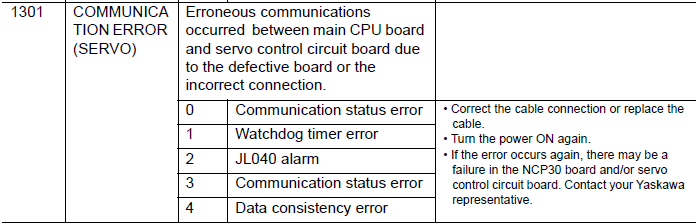NXC100 ALARM CODE 1301 COMMUNICATION ERROR (SERVO) February 18, 2026 14:50 Updated Comments 0 comments Please sign in to leave a comment.
