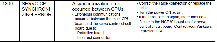NXC100 ALARM CODE 1300 SERVO CPU SYNCHRONIZING ERROR February 18, 2026 14:52 Updated Comments 0 comments Please sign in to leave a comment.