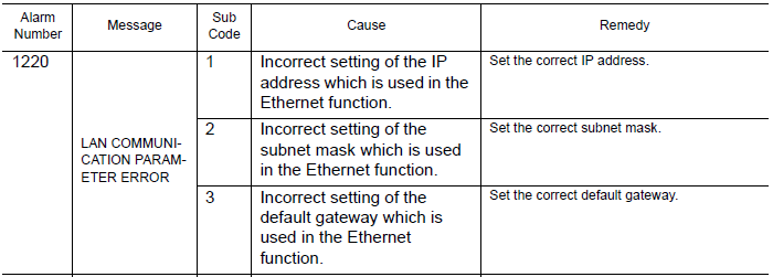 NXC100 ALARM CODE 1220 LAN COMMUNICATION PARAMETER ERROR February 18, 2026 15:31 Updated Comments 0 comments Please sign in to leave a comment.