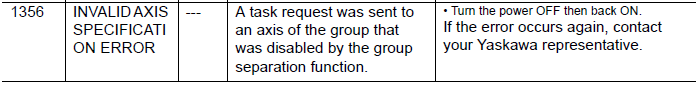 NXC100 ALARM CODE 1356 INVALID AXIS SPECIFICATION ERROR February 18, 2026 20:04 Updated Comments 0 comments Please sign in to leave a comment.