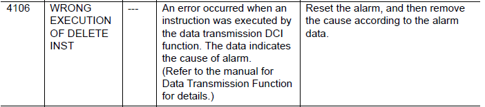 NXC100 ALARM CODE 4106 WRONG EXECUTION OF DELETE INSTRUCTION February 19, 2026 18:58 Updated Comments 0 comments Please sign in to leave a comment.