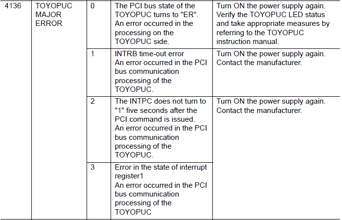 NXC100 ALARM CODE 4136 TOYOPUC MAJOR ERROR February 19, 2026 20:27 Updated Comments 0 comments Please sign in to leave a comment.