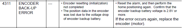 NXC100 ALARM CODE 4311 ENCODER BACK-UP ERROR February 23, 2026 18:41 Updated Comments 0 comments Please sign in to leave a comment.