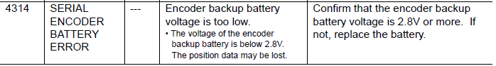 NXC100 ALARM CODE 4314 SERIAL ENCODER BATTERY ERROR February 23, 2026 18:47 Updated Comments 0 comments Please sign in to leave a comment.