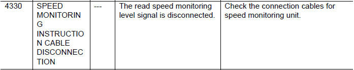 NXC100 ALARM CODE 4330 SPEED MONITORING INSTRUCTION CABLE DISCONNECTION February 23, 2026 20:50 Updated Comments 0 comments Please sign in to leave a comment.